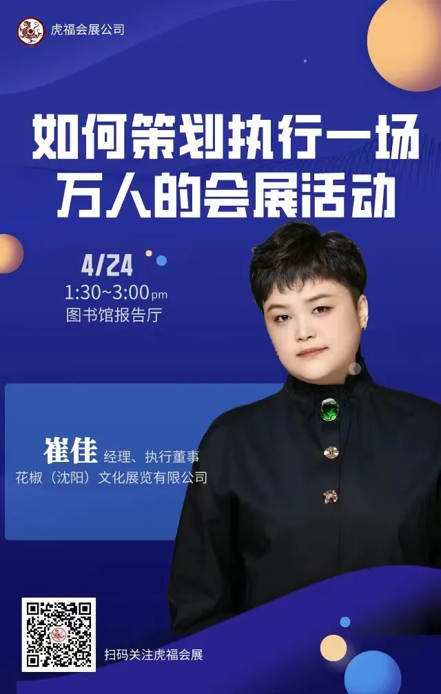 本期《会展大讲堂》我们将邀请花椒(沈阳)文化展览有限公司的经理、执行董事崔佳女士,为我们带来《如何策划执行一场万人的会展活动》主题演讲!