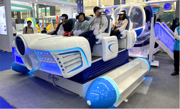 在拓普互动打造的“星际空间”,头戴VR眼镜,坐上“星际飞碟”,在翻转挪移、上升下滑间遨游神秘太空。拓普互动与同济大学、上海航天信息研究所等共建了“沉浸式体感仿真实验室”,取得安全系数高的飞行器、六轴VR赛车运动平台等多项专利技术,除“星际空间”的VR娱乐设备外,也在军工、航空航天等领域有所应用。
