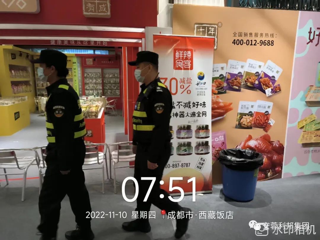 安蓉利邦在本届糖酒会各个酒店展览中,承接了锦江宾馆、香格里拉大酒店、西藏饭店、岷山饭店、帝盛酒店等成都各大酒店的安检、安保任务。