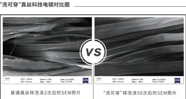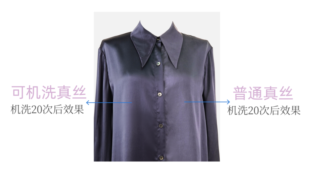 走进凯喜雅展位时,巡展领导对于可机洗真丝面料表现出了浓厚兴趣。凯喜雅控股公司副总经理黄然向胡伟副省长、吴晶副主任等领导介绍了可机洗真丝系列,并展示了可机洗真丝面料与普通真丝面料拼接而成的样衣在经过20次水洗试验后的对比效果。“我们利用独家的’Innosilk® ‘丝蛋白分子链多维空间技术对真丝面料进行了处理,很大程度上解决了真丝面料易泛白起毛、易褪色等洗护难题,经过20次机洗后,面料仍能保持良好的物理性能。”黄总介绍到。