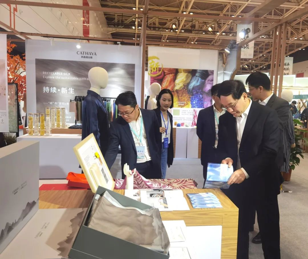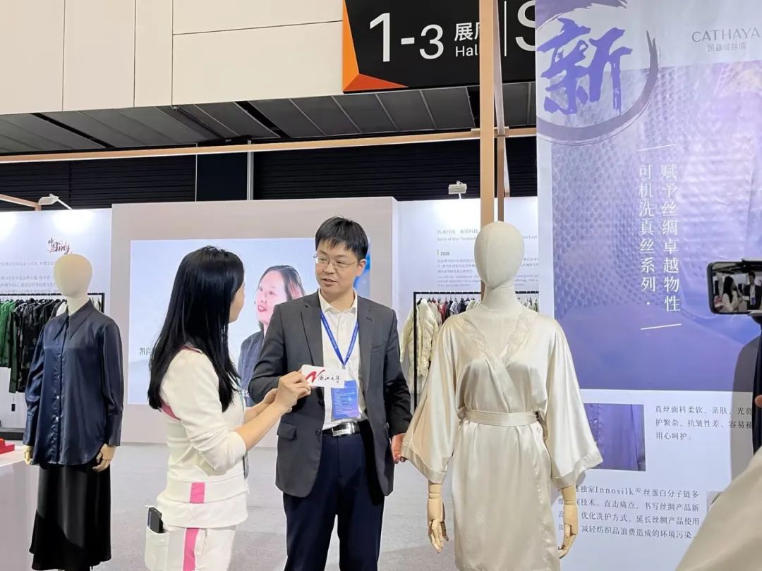 本次参展还展出了亚运“国宾壹号”丝绸礼此湖勾留系列产品,“水之舞”防水防污面料、“丝耐赛丝”专业级防晒真丝等功能性产品,并对可回收蚕丝技术与产业化、植物染丝绸技术与产业化做了重点展示,向参观者传递环保与可持续发展的重要理念,彰显凯喜雅的社会责任与担当。