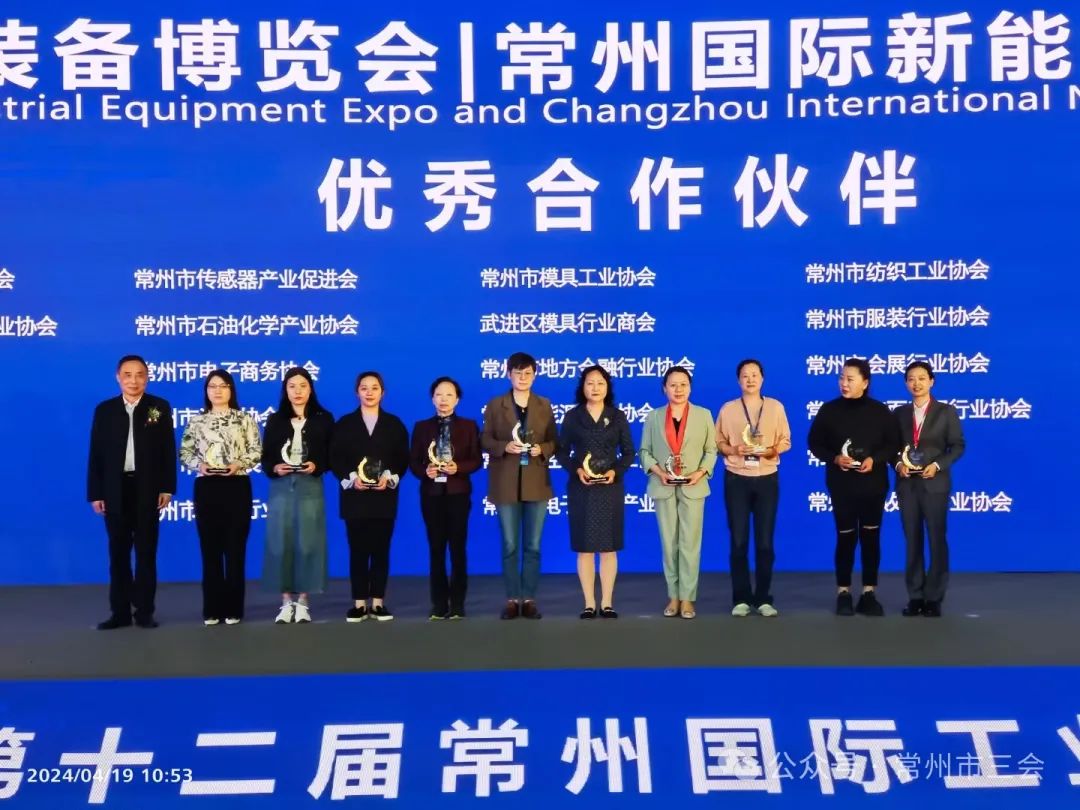市“三会”执行会长田晶华为工博会和将于今年9月举办的首届常州国际新能源汽车产业博览会协办单位的42个行业协会及法律顾问单位上海博和汉商(常州)律师事务所颁发了“双博会”“优秀合作伙伴”奖杯。