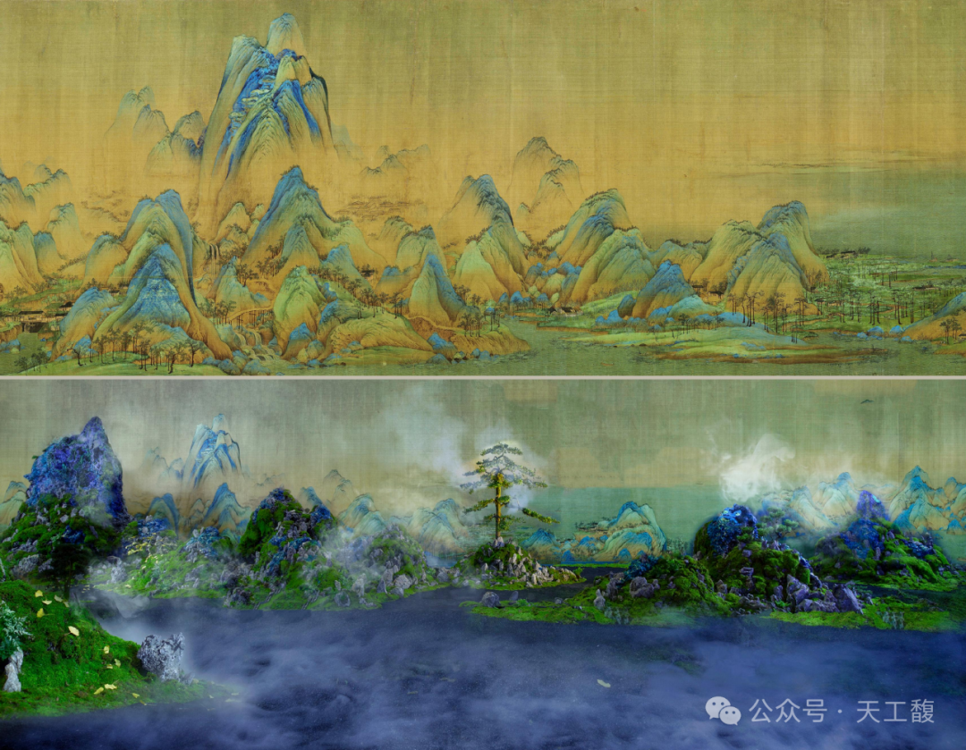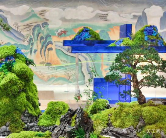 天工馥尝试将花道/园艺与现代科技相结合。利用现代科技手段,如金属激光切割、机械装置或智能传感器等,打造出更具互动性和体验性的花道/园艺作品。未来,天工馥花道/园艺的教育培训和推广也是破界的重要渠道。通过举办花道/园艺讲座、工作坊、香料实验室或展览等活动,向更多的人普及花道/园艺的知识和技巧,激发大众对花卉植物的兴趣和审美情趣。让花道成为园艺的一种思路,实际上是将传统花道的艺术精髓与现代园艺理念相结合,创造出既具有美学价值又富有生活气息的植物景观。融合自然与人文:借鉴传统花道艺术中崇尚自然、讲究线条和姿态的特点,将花卉、枝叶等植物素材按照自然生长形态进行布局,同时融入人文元素,如诗词、书画等,使园艺作品既具有自然之美,又富含文化底蕴。注重空间布局:借鉴花道艺术中的构图技巧,通过高低错落、俯仰呼应、疏密聚散等手法,打造层次丰富的植物空间。可以利用不同形态和颜色的植物,创造出具有视觉冲击力的园艺景观。王希梦开创青绿山水画派的《千里江山图》是宋朝的创新和突破。