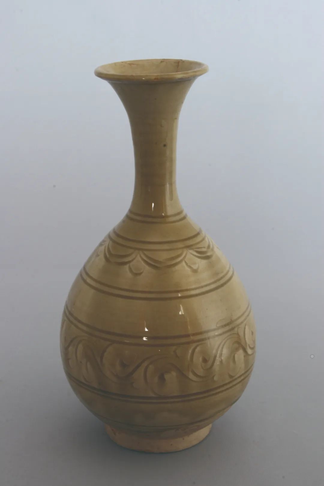 元代青釉刻花牡丹纹玉壶春瓶