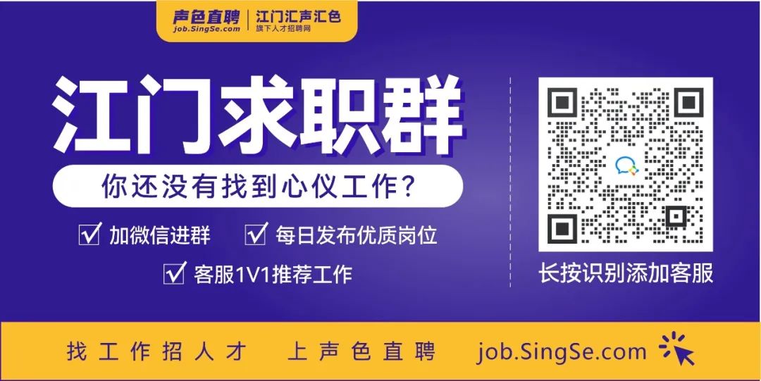 以上信息均由江门声色直聘企业自行发布,所有内容均由发布者对信息的真实性负责,声色直聘平台及本公众号平台仅提供信息发布、展示。