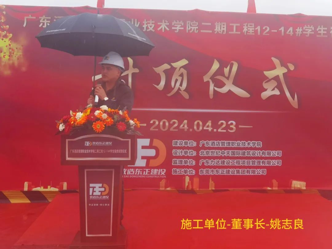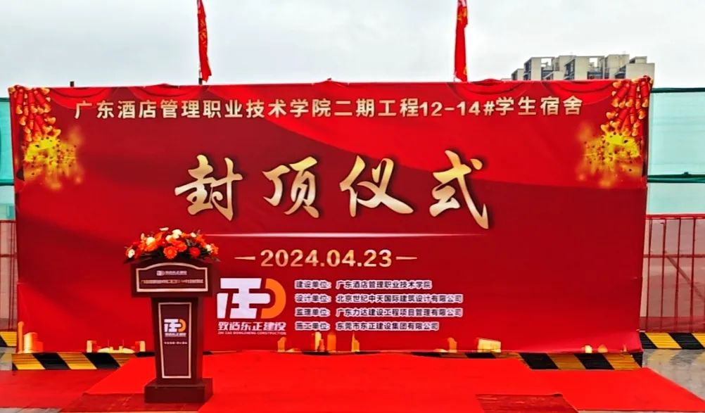 四月,带着温暖和希望,微雨过后,皆是数不尽的春光。2024年4月23日,我们满怀喜悦之情,欢聚在此,共同见证这个值得纪念的时刻——市青企联理事企业东正建设集团承建的广东酒店管理职业技术学院二期学生宿舍楼成功举行封顶仪式。这是东莞市东正建设集团有限公司匠心独运、精诚筑造的又一力作,更是我们携手共建、匠心筑梦的荣耀见证。