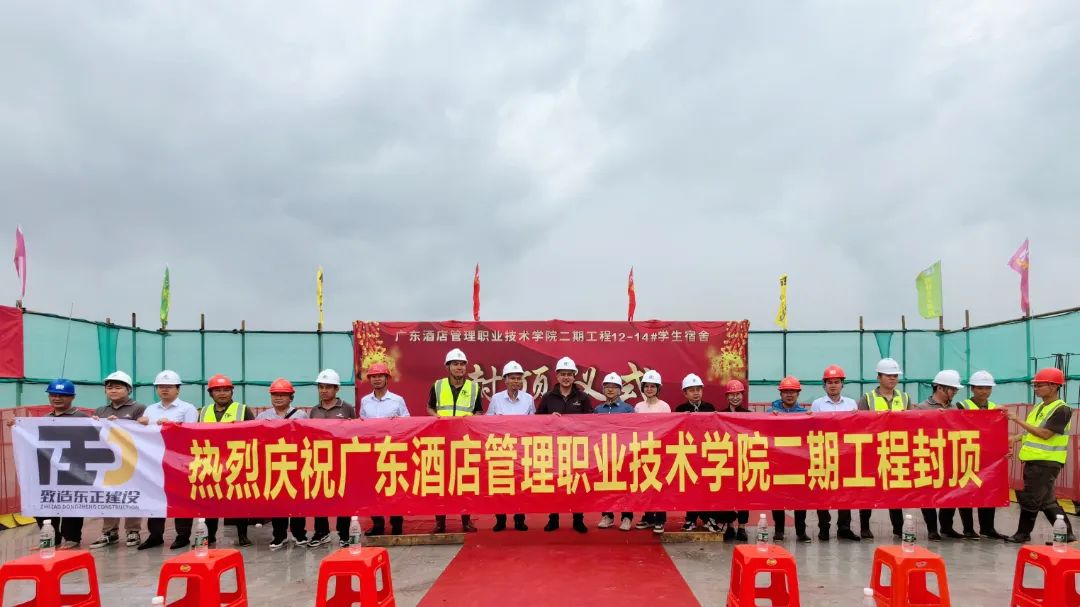 伴随着礼炮齐鸣,迎来该项目具有里程碑意义的荣耀时刻,参加封顶仪式的建设方领导与东正建设集团董事长姚志良及参建单位代表一起,手挥金铲,共同浇筑最后一方混凝土,标志着广东酒店管理职业技术学院二期12-14#学生宿舍楼主体结构,按照节点进度计划提前封顶!
