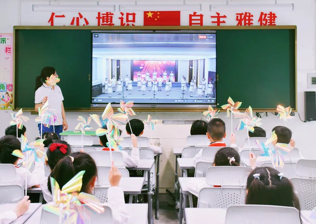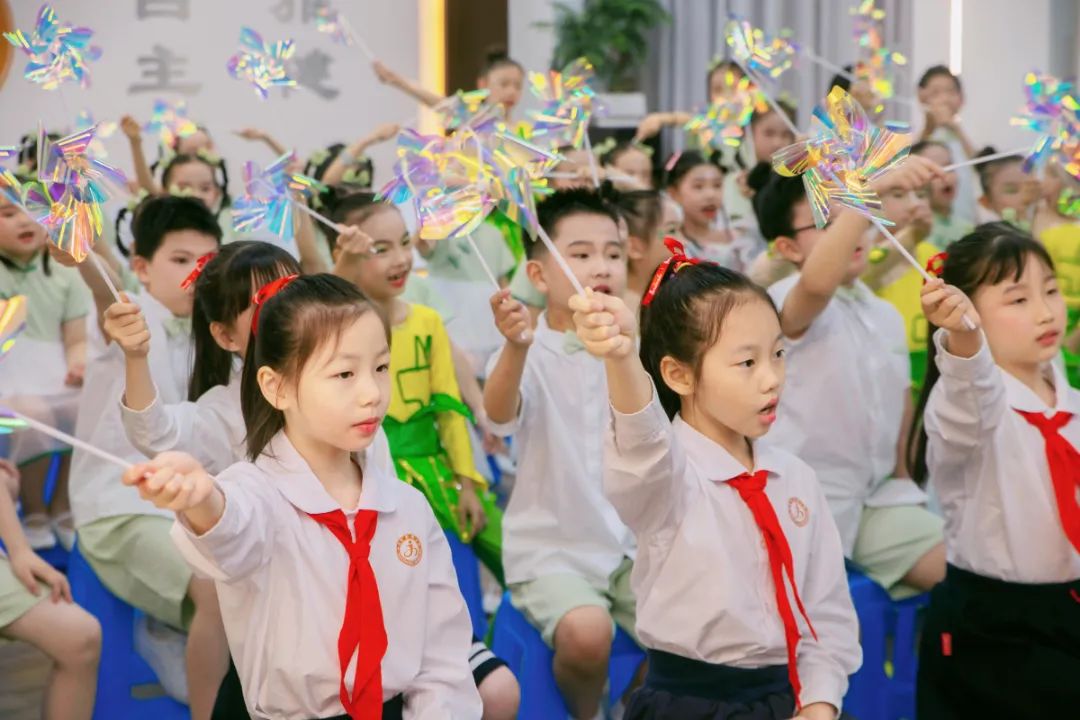 花开田埂上,嬉戏阡陌间。大合唱《田埂五月风》将整场活动推至高潮,孩子们挥动手中的风车,用澄澈的童声传递万物生长的美好。愿每一个金晖学子在阅读的自留地播种耕耘,收获成长。