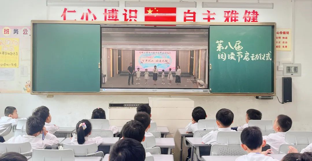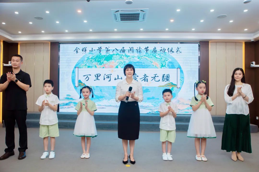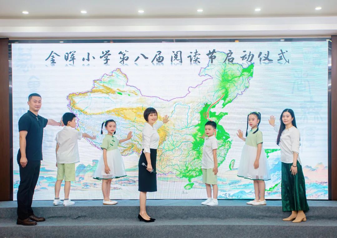 伴随着本届阅读节即将推出的“万里河山 读者无疆——悦读金晖课程之‘行走的阅读者’”活动,万里河山的美好画卷在屏幕上缓缓呈现。陈泓校长宣布金晖小学第八届阅读节正式启动,与家长、学生代表一同点亮地图,开启阅读之旅,让阅读成为我们丈量世界的脚步。