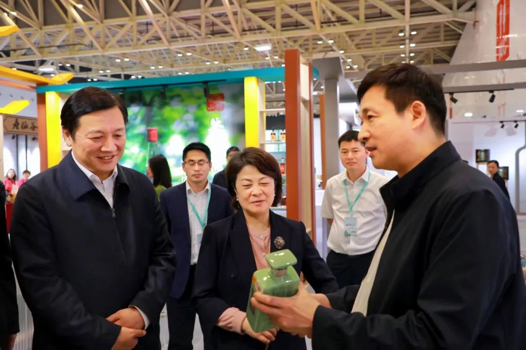 浙江省人大常委会副主任吴晶、浙江省副省长胡伟一行莅临视察“古越龙山”展台,浙江古越龙山绍兴酒股份有限公司总经理徐东良细致地介绍了黄酒的深厚历史底蕴与独特文化,并特别推介古越龙山“只此青玉”。吴晶一行当场品尝美酒,并对“只此青玉”给予了高度评价,“只此青玉”入喉顺滑,醇厚而又不失细腻,回味悠长,令人陶醉。