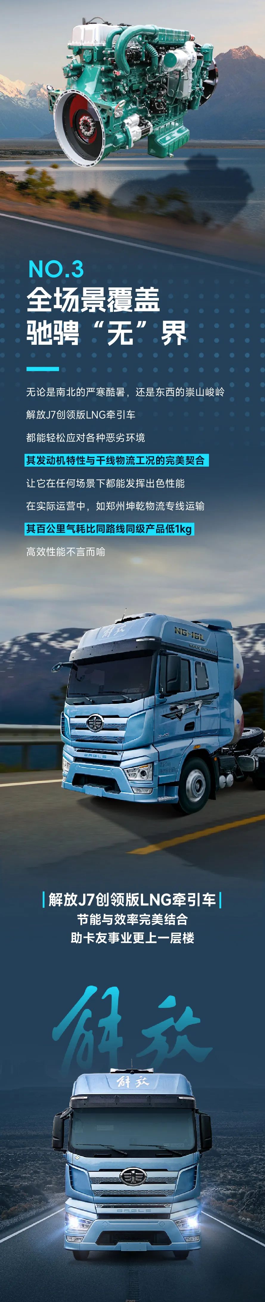名车博览 | 解放J7创领版600马力LNG牵引车气耗超低,满载“挣”能量!
