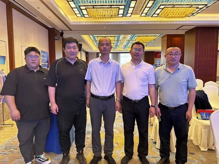 图为主办方与聊城市工业和信息化局领导及聊城市纺织服装产业联盟秘书长谢鹏先生等人合影