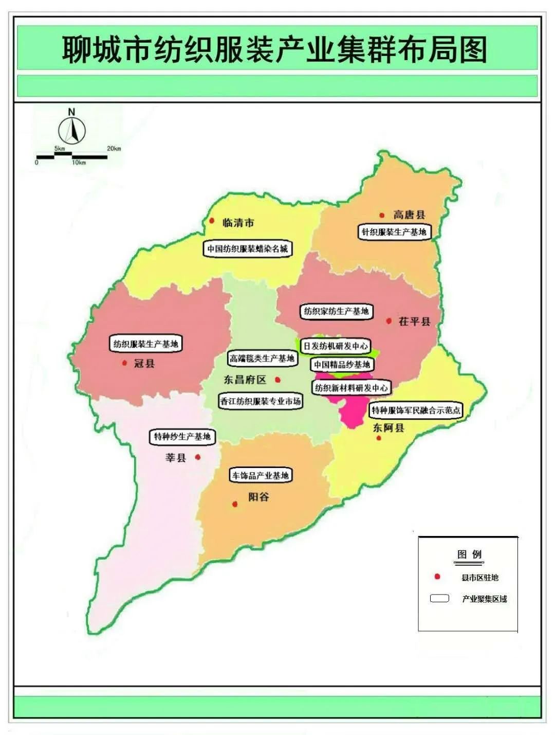 —东阿县:以盛世隆和盈泽纺织为中心,重点发展特种服饰、牛仔服装系列产品,打造特色服装生产基地。