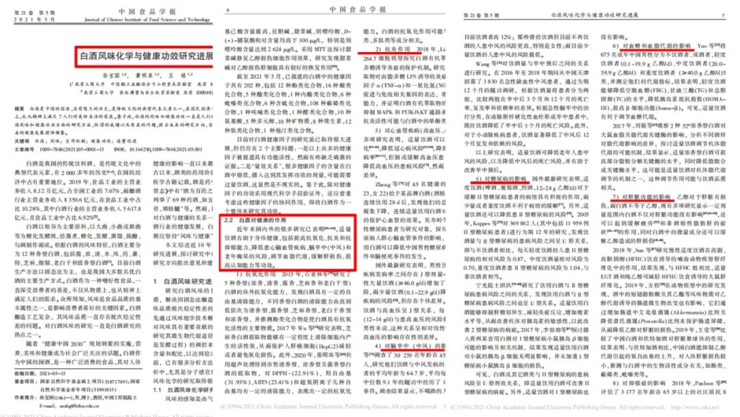随着 “健康中国 2030” 规划纲要的实施,营养、美味和健康成为社会广泛关注的话题。酱酒作为中国的国酒,是一种广泛消费的食品,其对人体健康的影响一直以来都是研究人员的关注点。