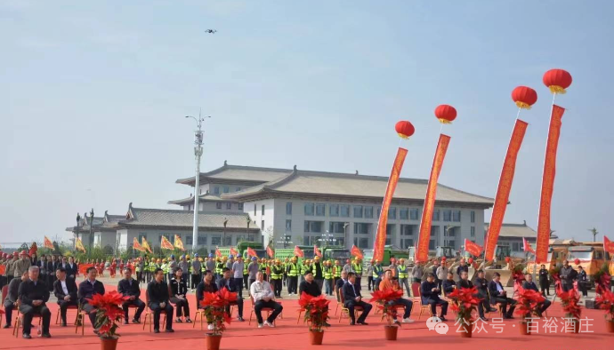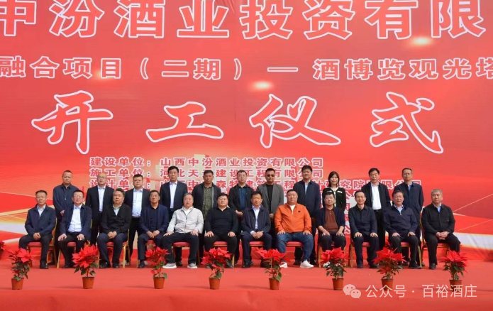 人间四月,草木争荣。4月20日上午,山西中汾酒业投资有限公司“酒文旅融合项目暨酒博览观光塔景区工程”开工仪式隆重举行。汾阳市委常委、杏花村开发区党工委书记、管委会主任韩学尧,党工委副书记李志祥,副主任李树盛、董士元,杏花村镇党委书记李小刚、镇长阮云波,贾家庄镇党委书记吕汉新、镇长刘静等领导出席。汾酒集团发展区公司董事长总经理李沛洁及班子成员,中汾公司班子成员及施工、设计、监理方代表和参建人员共计约500余人参加。