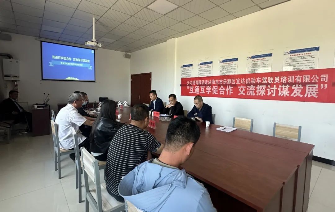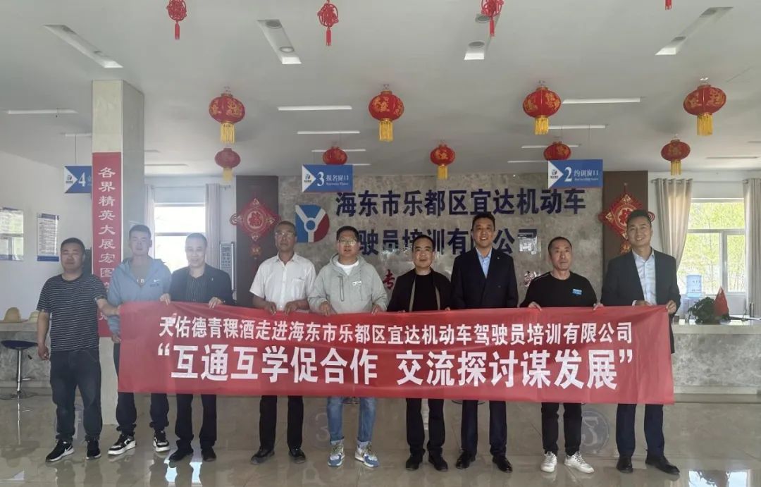4月17日,天佑德青稞酒公司走进乐都区宜达机动车驾驶员培训有限公司,开展以“互通互学促合作 交流探讨谋发展”为主题的交流活动。乐都区宜达机动车驾驶员培训有限公司校长赵国海,财务主管赵素霞及公司相关领导同天佑德青稞酒公司营销中心海东大区总监刘鹤财,营销中心散酒业务部部长王力,乐都办事处营销经理王兴邦,海东恒庆博商贸有限公司经销商肖永平共同参加此次交流活动。