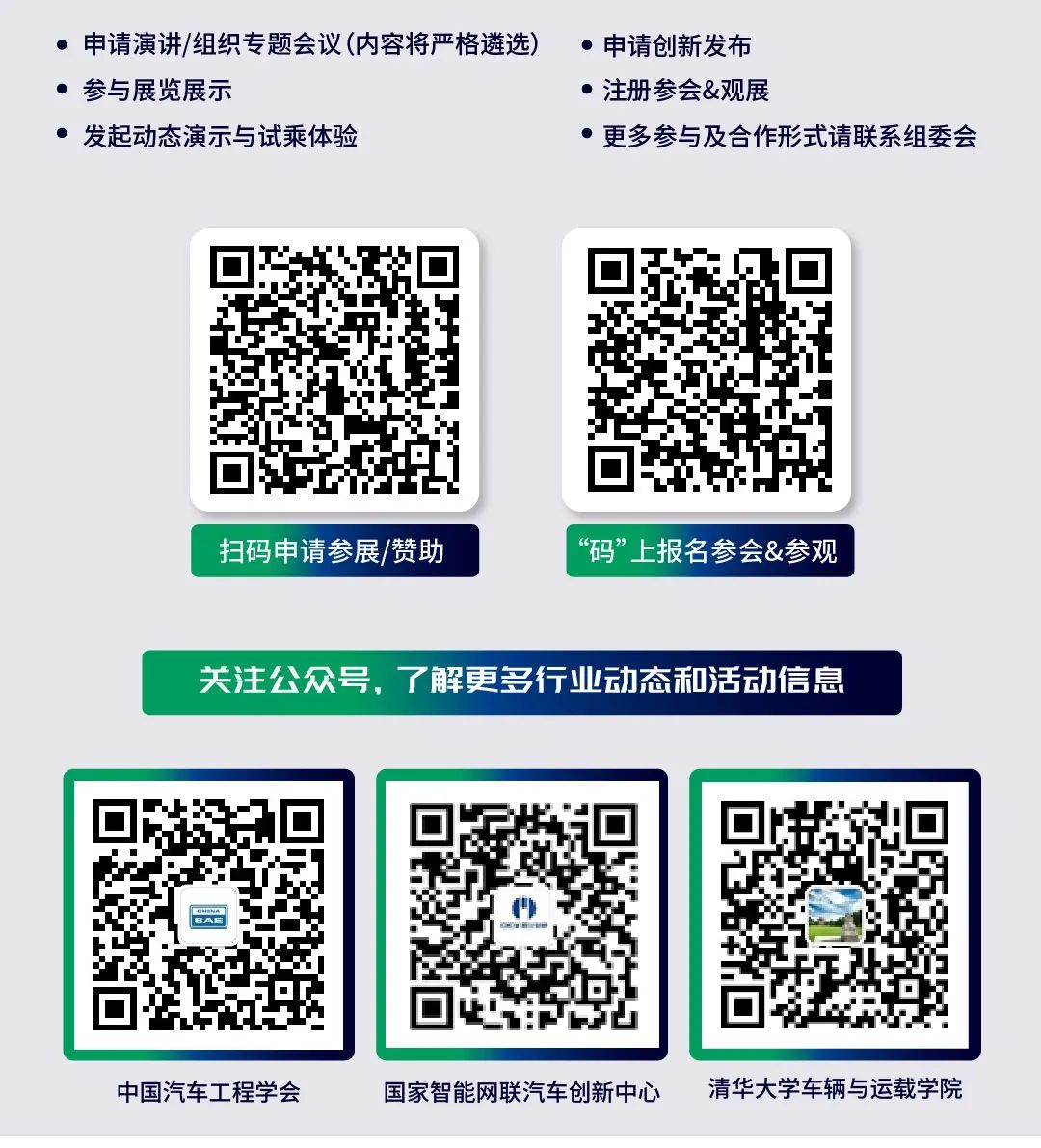 参会范围:汽车、交通、信息通信等相关领域的政府部门、企业、高校与科研机构、行业组织、地方代表、投资机构