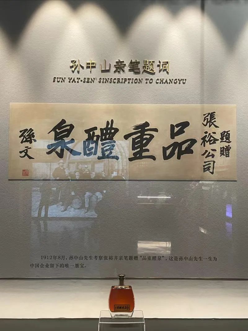 1912年8月18日,孙中山先生接受袁世凯的邀请赴京会谈,从上海出发,沿水路北上,到达烟台后下榻于克利顿饭店,在烟台期间孙中山先生发表了著名的革命与实业报国的演说,并且到张裕公司参观视察,亲笔题词“品重醴泉”,既赞扬了张弼士先生实业兴邦、商业救国的高尚品格,又赞扬了张裕产品的优良品质。这幅题词是孙中山先生一生为中国企业留下的唯一墨宝。