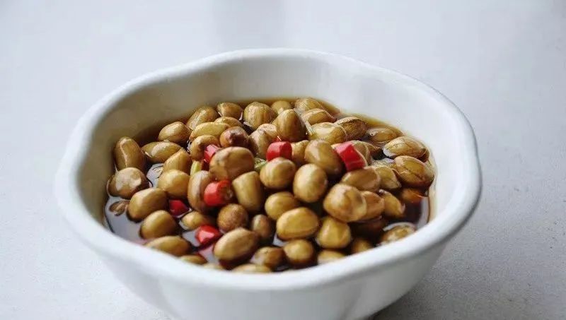 2、取不锈钢桶,放入花生米,辅料野山椒、罗汉笋、香料。