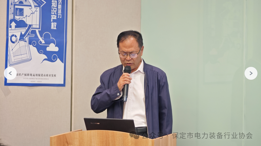 本次研讨会由保定市市场监督管理局(知识产权局)、保定市市场监督管理局高新区分局主办,保定市电力装备行业协会、盛询科技集团有限公司、电力装备产业知识产权运营中心、保定市知识产权协会、深圳湾(保定)创新发展有限公司、英利能源发展有限公司、河北光迅专利代理有限公司、保定国家高新区科技创新超市承办。来自科研单位、产业园区、电力装备行业企业代表,以及知识产权领域专家等近六十人莅临现场参会。保定市电力装备行业协会党支部书记王利琨参加了会议。活动开始,由保定市市场监督管理局高新区分局四级调研员陈占营致辞。主旨演讲环节,北京盛询知识产权代理有限公司保定分公司负责人张浩伟、英利能源发展有限公司技术管理总监刘莹分别进行了题为《知识产权赋能电力装备产业创新发展》、《企业专利技术产业化经典案例分享》的主旨演讲。本次研讨会为促进电力装备产业专利成果的转化与应用提供了交流思想、分享经验、展示成果的平台,现场共同探讨交流了电力装备产业在知识产权创新发展及专利产业化的发展策略和实践经验,进一步推动了科技成果的交流转化。