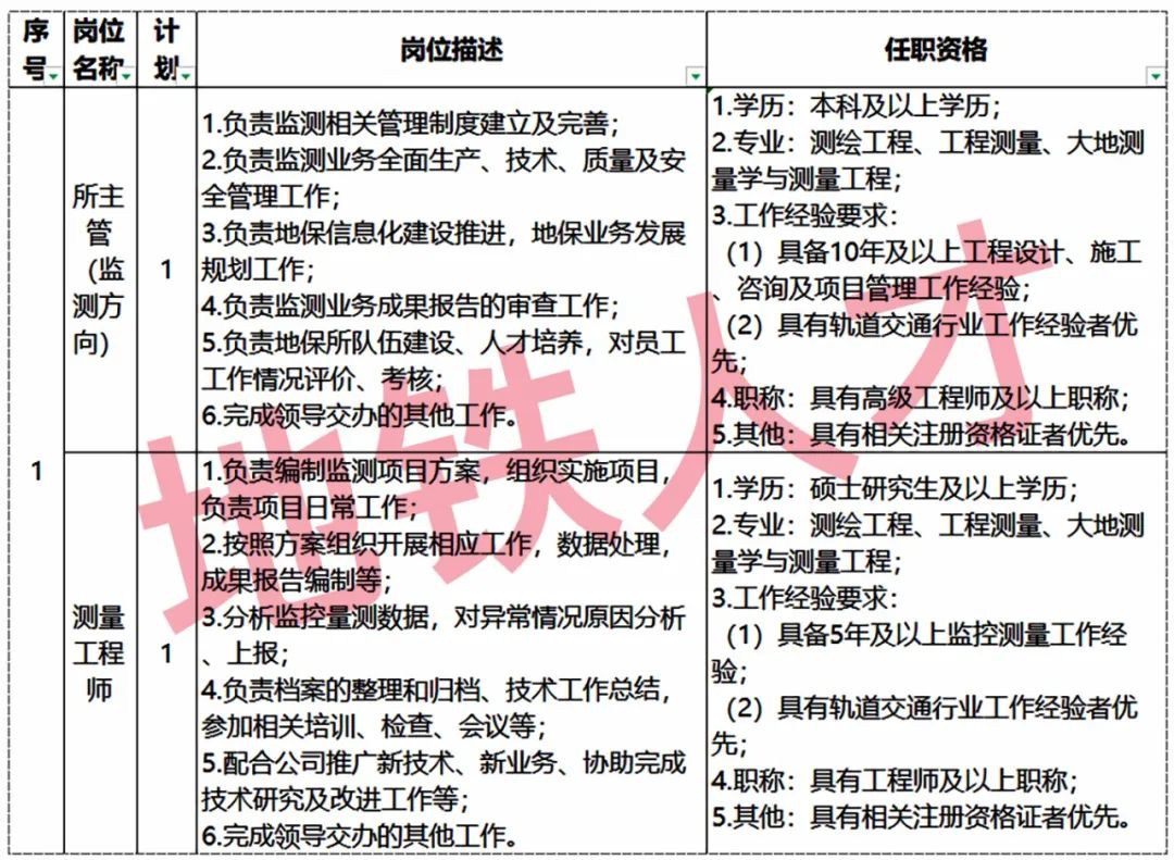 2、工程造价!又一地铁咨询公司招聘公告(5.6)