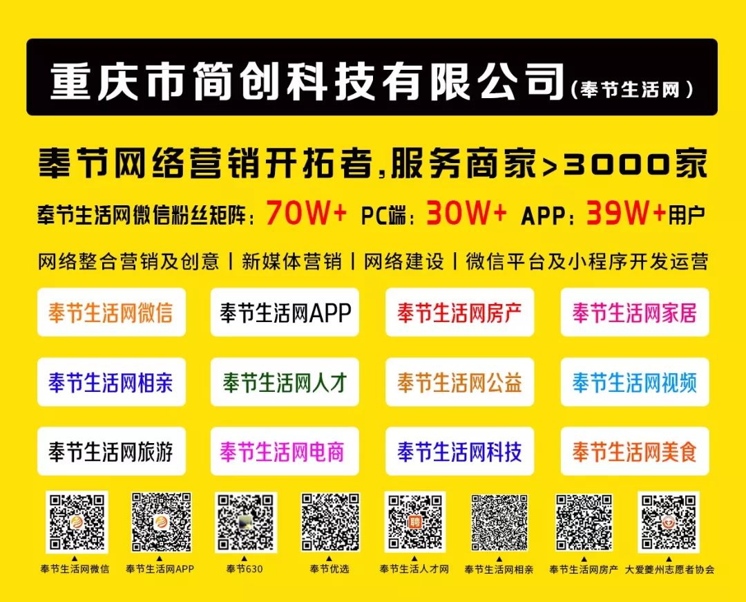 【提示】奉节630微信公众号只是奉节生活网平台其中一小部分内容,通过奉节生活网APP可以100倍的了解奉节。奉节人都在用奉节生活网APP交朋友、查信息、打游戏、晒心情!有它就可快速了解奉节,实时动态、号码查询、互助拼车、招聘求职、房产家居、征婚交友、兴趣圈子等等,还有好多功能等你来发现,爱上奉节、爱上奉节生活网。