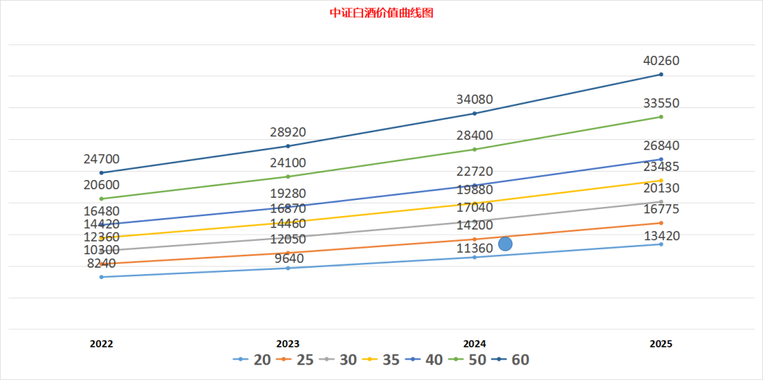 目前中证白酒估值为24PE,点位12700,按照2024全年业绩推算,目前估值仅为21PE。上图中的蓝色圆点,就是目前中证白酒价值位置。