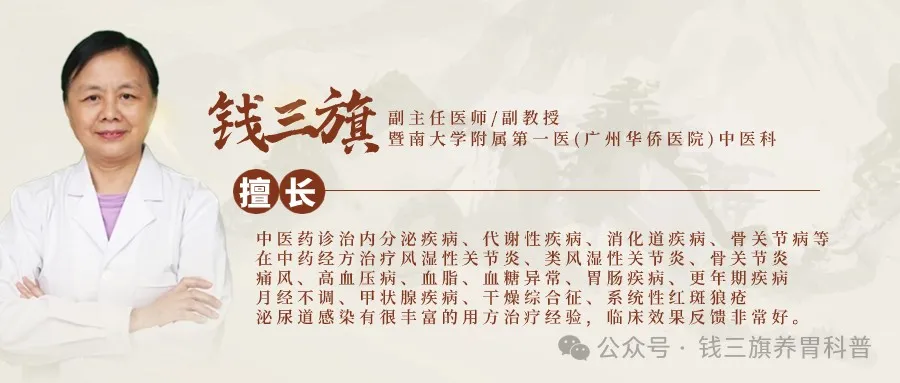 我是公立三甲医院中医钱三旗医生,从医有40多年了,积累了大量的经典老方,这些方子都有一个特点:【简单+便宜+安全+有效】,如果你也有脾胃方面困扰,扫描下方微信可以找到我!
