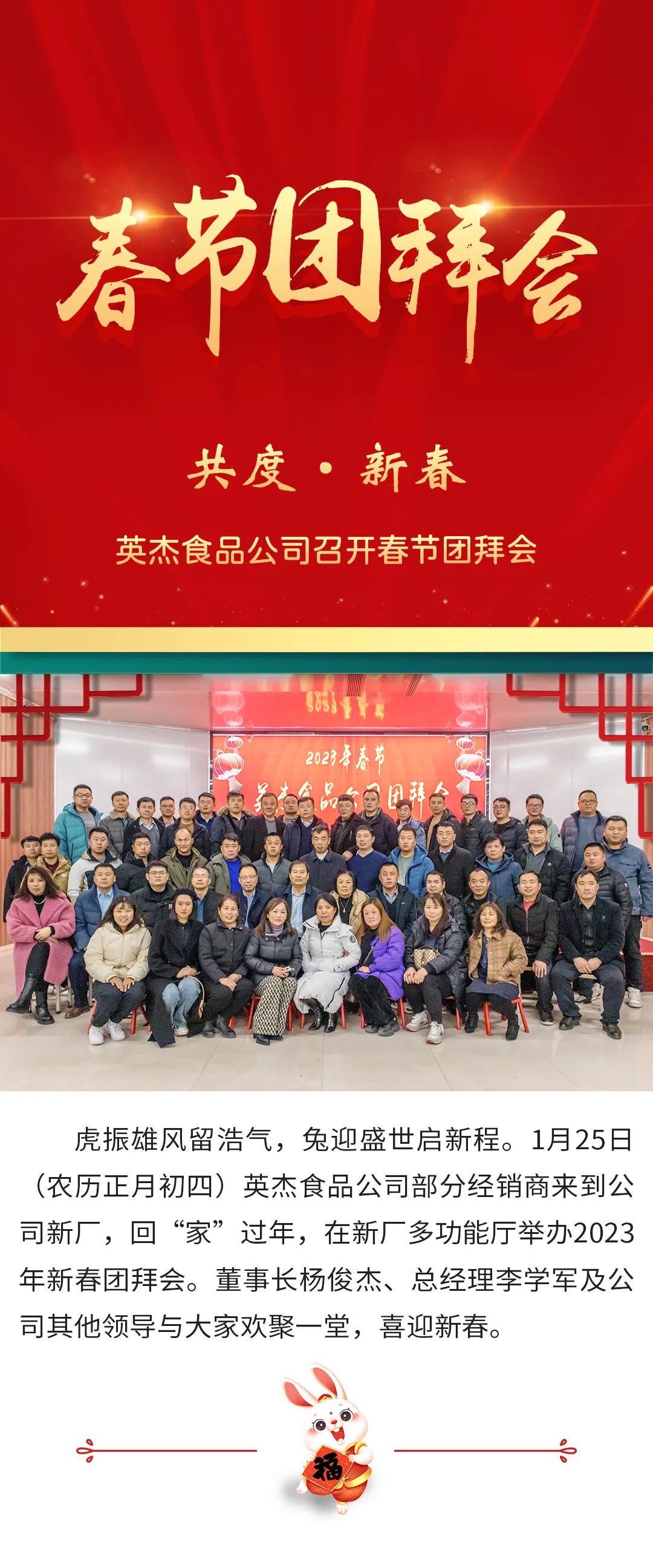 英杰食品公司召开春节团拜会,共度新春!
