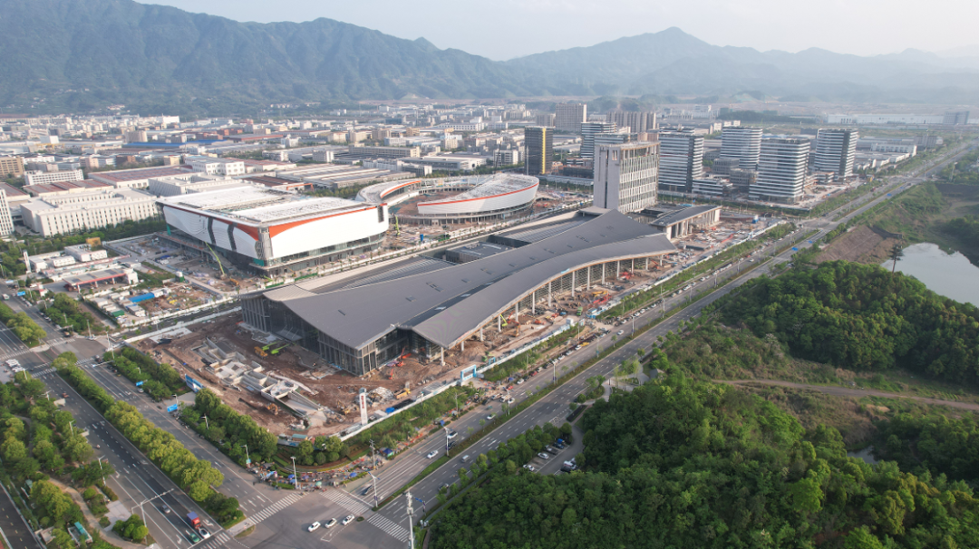 丽水国际会展中心项目位于丽水经开区秀山路与惠民街交叉口东南地块,项目总投资约28亿元,总用地面积约为10.5万平方米,总建筑面积约为17万平方米,是丽水市迄今为止首个大型国际会议会展类项目,也是“智创新城”七百秧核心区区块、浙西南科创走廊中心区块的引领性和标志性建筑。项目自2021年12月开工建设以来,累计完成大跨钢结构屋面桁架约6800吊次,安装完成主体钢结构近15000吨。