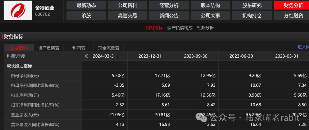 还有舍得酒业业绩明显下滑,今年一季度收入增长4%,利润却下滑了3.35%,舍得去年就开始下滑了,去年前三季度公司收入下滑近四成,利润直接腰斩。