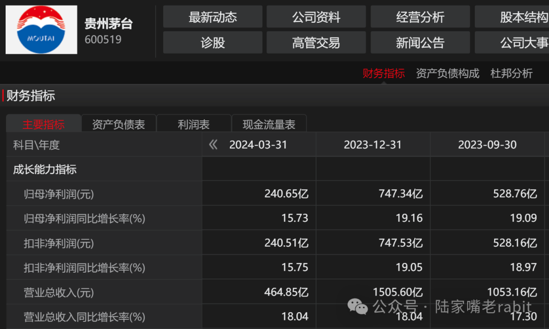 贵州茅台作为行业龙头依然很稳,2023年收入超过1500亿,利润达到747亿。今年一季度收入利润还有15%以上的增幅。
