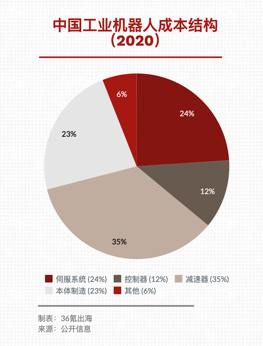 这也就意味着,为了追求与国际品牌相媲美的产品性能,中国工业机器人不得不采购海外核心零部件。而核心零部件占机器人本体价值的60-70%,按照理论计算,留在中国厂商手中的价值仅剩三成左右。