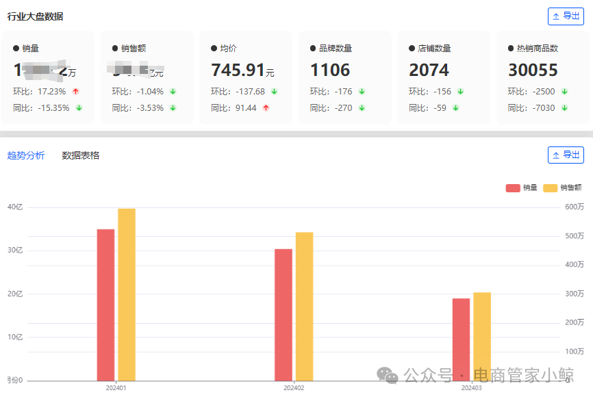 如想要查看京东(淘宝/天猫)全品类的销售数据(行业/品牌/店铺/商品/监控),欢迎直接添加下方客服微信备注“公众号”免费试用~(也支持api接口对接)