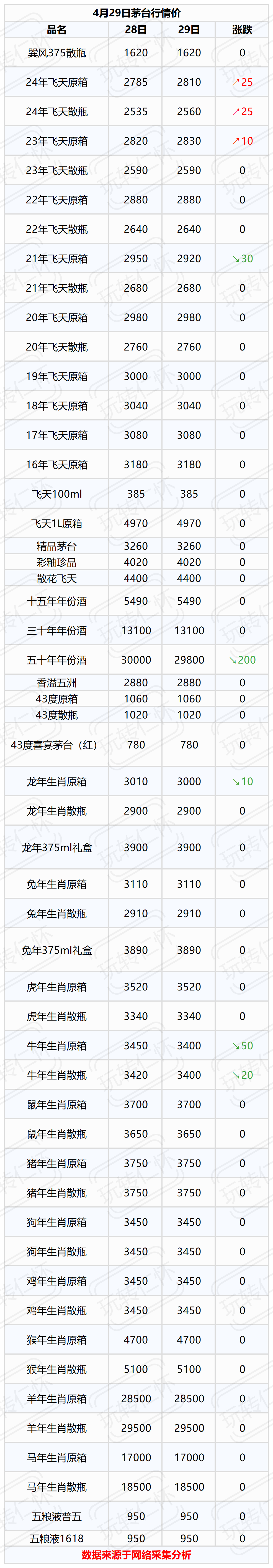 中国名酒行情价(4月29日)