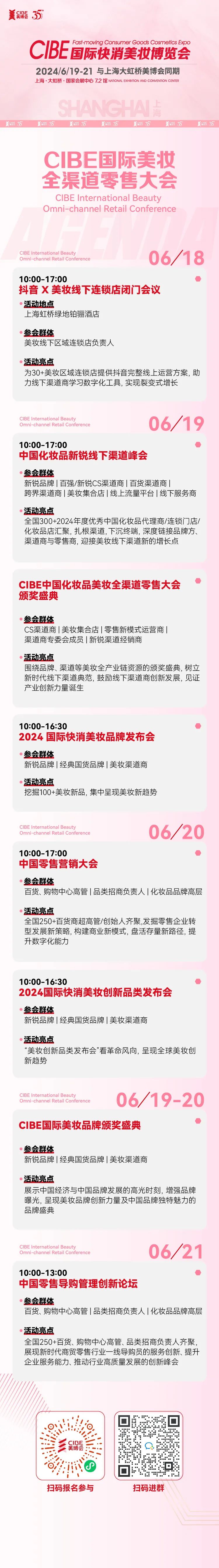 为此,6月19-21日,CIBE国际快消美妆博览会将打造多场高端定制化论坛,以“点燃线下新动力”为总议题,创办CIBE国际美妆全渠道零售大会。