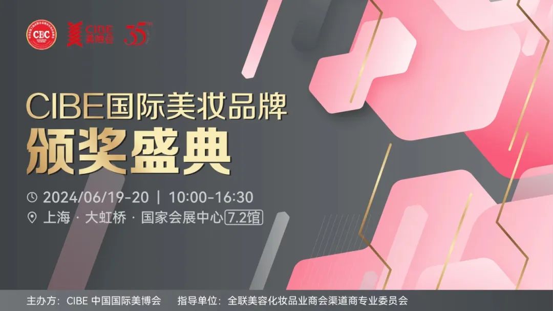 6月19-20日,“CIBE国际美妆品牌颁奖盛典”将由中国国际美博会发起,全联美容化妆品业商会渠道商专业委员会指导,旨在呈现中国经济与中国品牌发展的高光时刻,为那些在品牌创新、思维创新、社会价值等方面做出积极贡献的美妆品牌颁发荣誉,以表彰他们在美妆行业中的杰出表现和影响力。