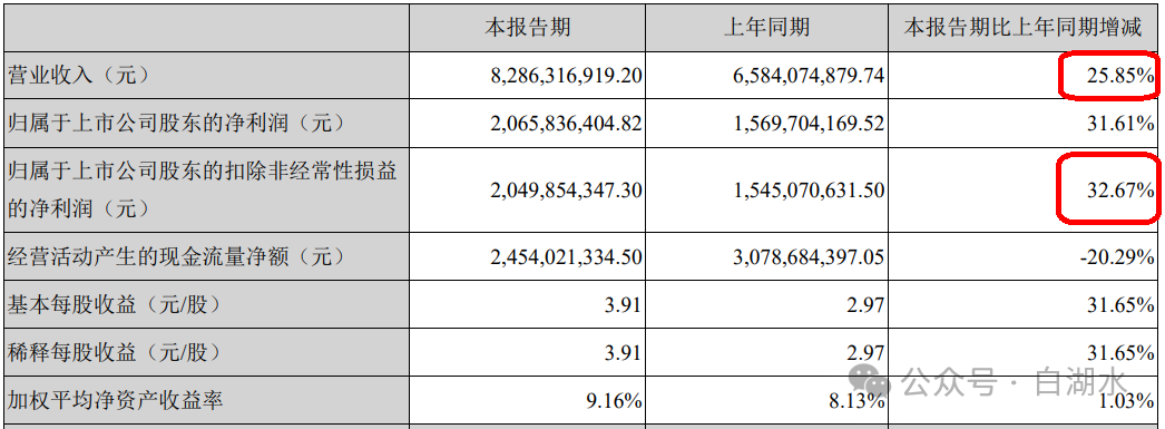 营业收入增长26%,扣非净利润增长33%。仍然保持高速成长!