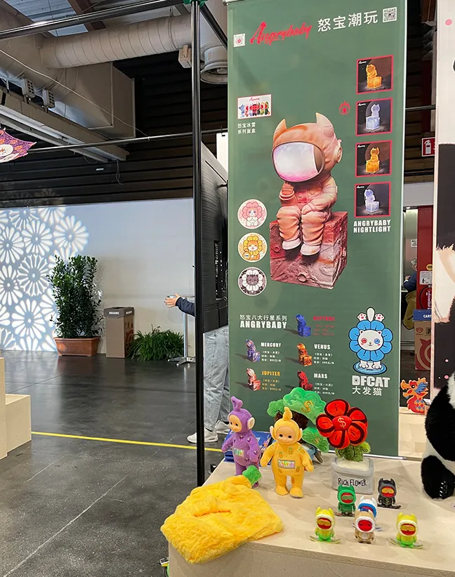 除了这些富有杭州风韵的文创好物,本次展会还展出了由潮玩艺术家、手办专家、潮玩联盟发起人冯冬明创作设计的潮玩IP——怒宝。怒宝是一头充满正能量的红色小牛,在现场吸引了不少观众围观。