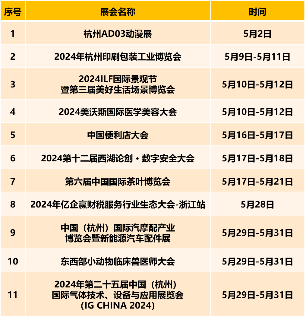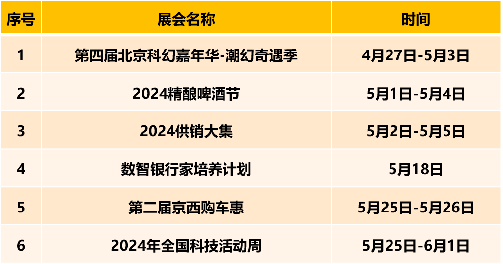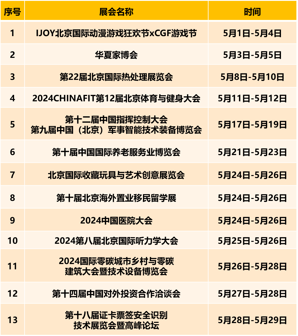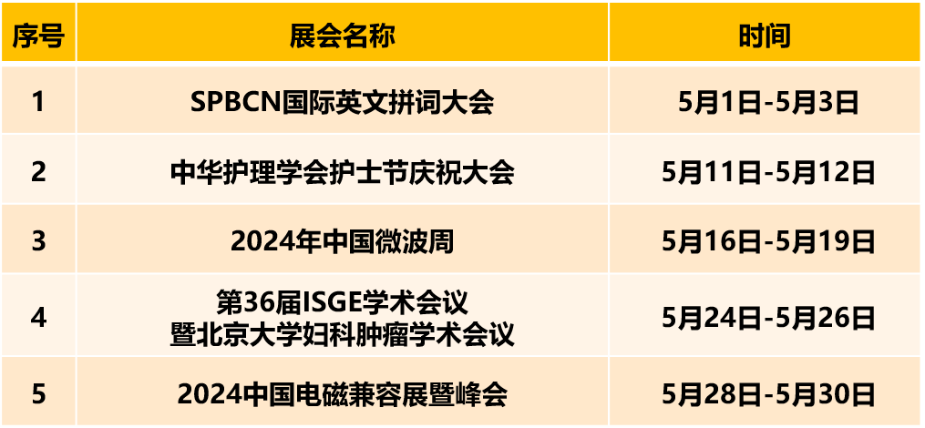 首都会展集团旗下场馆5月份展会安排
