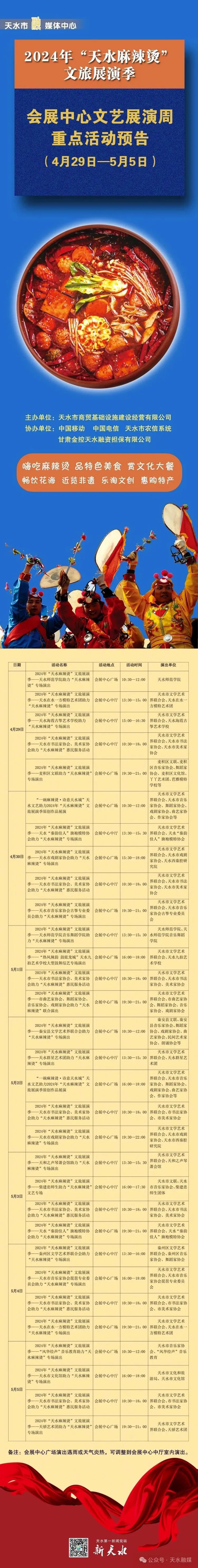 “天水麻辣烫”会展中心文艺展演周活动预告来了!