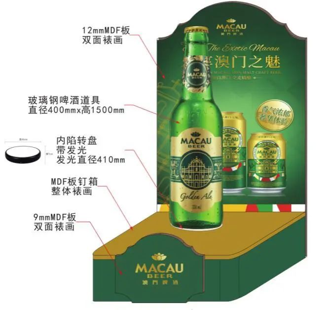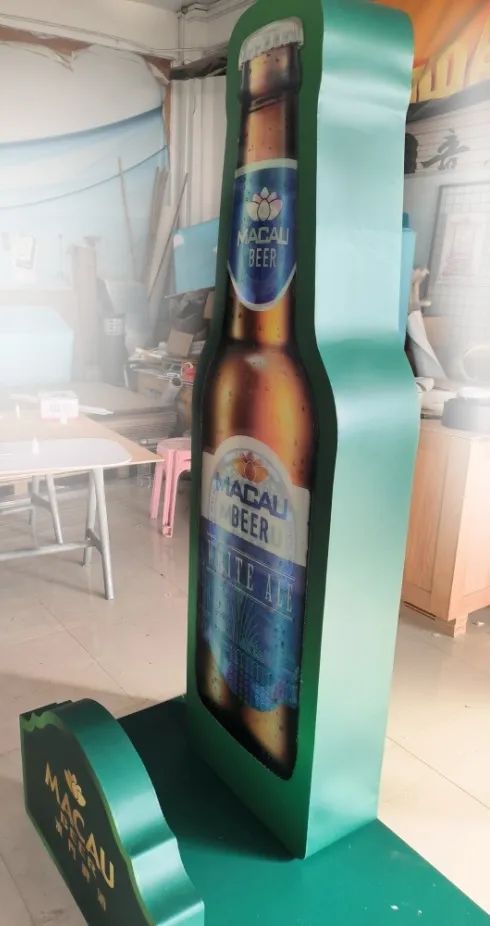 為增強品牌形象並推廣新產品,某啤酒品牌計劃定製兩套創新的立體陳列道具。由於該品牌以往主要採用平面廣告形式,沒有做過立體陳列展示。客戶向我方提供了相關效果圖,並說明了其想法與具體要求,讓我們的實現該創意展示。