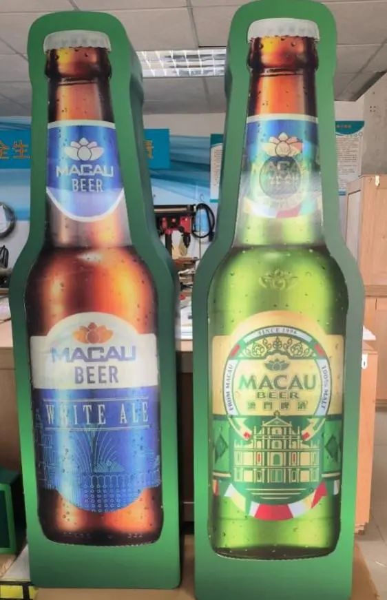 客戶想要同一道具上展示到兩個系列的啤酒產品,同時製作成本低一些。我們向其推薦了光柵變畫,可以在不同角度展示出兩個系列啤酒的畫面。