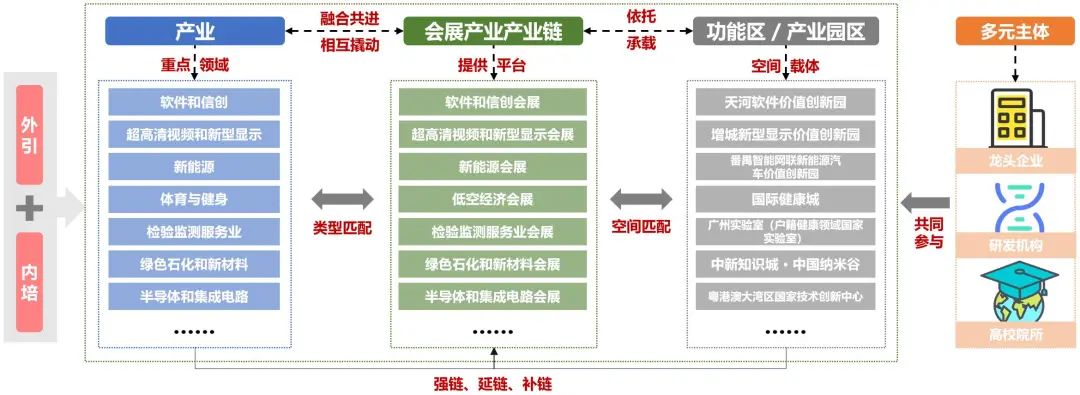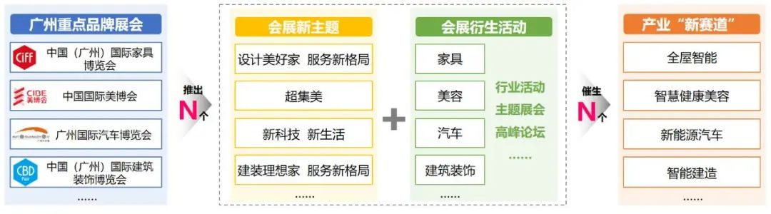 围绕广州南站、中新知识城、广州东部中心、北部增长极等重点区域建设“N个特色会展会议场馆”,联动数字经济、海洋经济、低空经济等新质生产力,引进与产业发展相契合的新兴会展品牌,形成以展促产、以产带展的良性互动循环。