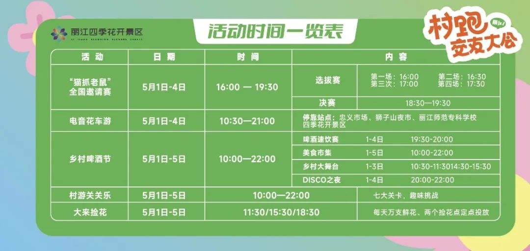 这个“五一”,让我们一起迎接一场与啤酒有关的挑战,领略美食的魅力,释放内心的激情,在四季花开的画卷里,创造属于这个假期的燃情记忆吧!更多精彩活动请点击:五一出行必看 | 丽江CountryRun村跑交友大会又野又嗨