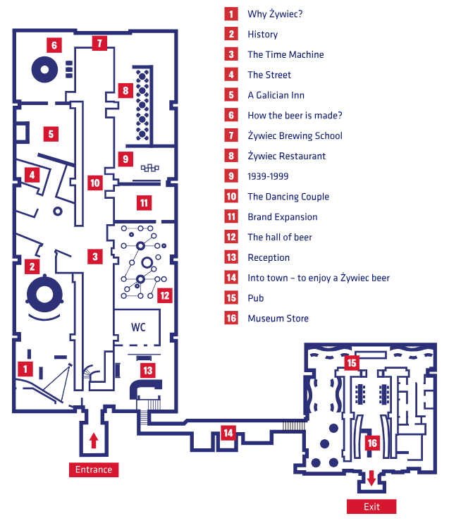博物馆位于啤酒厂以前的发酵酒窖中,总展陈面积为1600平方米,内设包括啤酒厂的历史、时光机、品牌的扩张、小酒馆体验区等16个展区,完美地将日维茨地区啤酒历史、酿造技术变迁与啤酒厂发展历程等要素融合呈现。在这个曾经酿造过、至今仍在酿造啤酒的地方,游客可以触摸、可以拍照、可以品尝,深入了解工艺、技术、企业家精神以及西里西亚啤酒工业史。