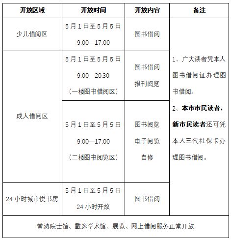5月1日(周三)至5月5日(周日)具体开放情况如下: