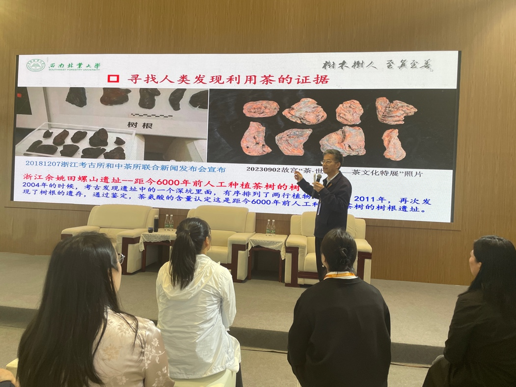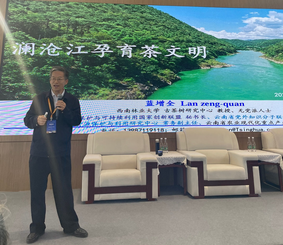 展览会期间,古茶树保护国家创新联盟秘书长蓝增全教授还作了题为《澜沧江孕育茶文明》的主题报告。报告中,蓝教授详细阐述了澜沧江流域的茶文化历史、现状和未来发展趋势,深入分析了古茶树在茶文明中的重要地位和作用,并呼吁社会各界共同关注古茶树的保护工作,促进茶产业的健康发展。蓝教授的精彩报告不仅赢得了现场观众的阵阵掌声,也为古茶树保护工作的进一步推广普及提供了有力支持。