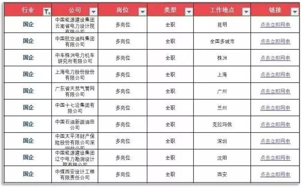 ⑤全国31个省市国企名录&网申报名地址