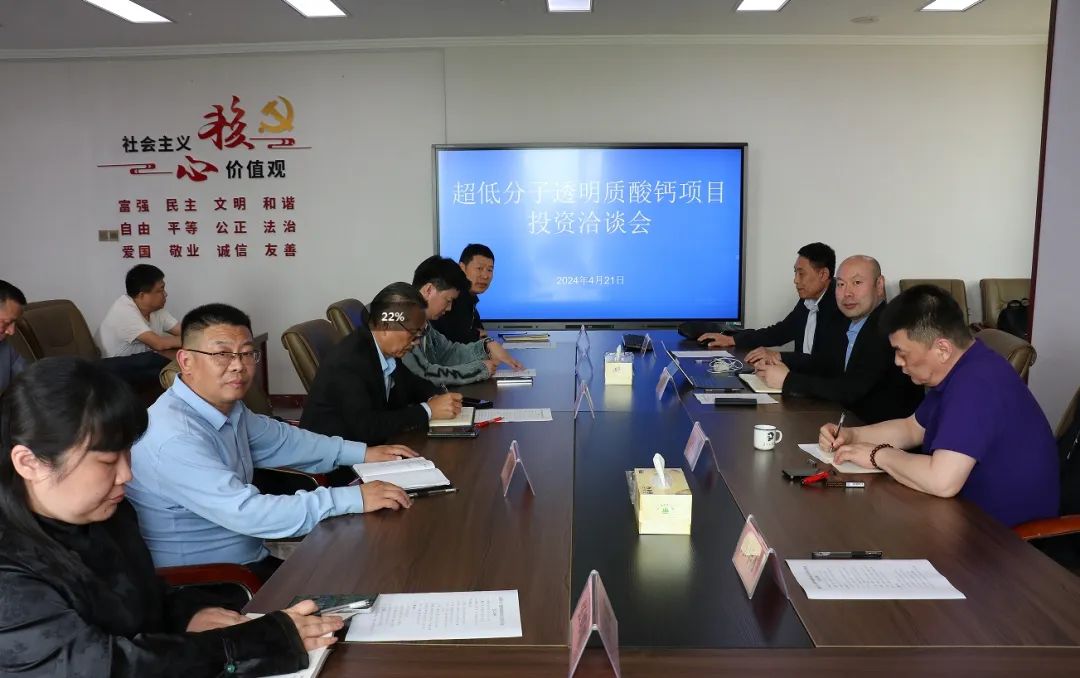 4月22日下午,淮北市建筑业协会在秘书长黄士勇的主持下召开超低分子透明质酸钙投资洽谈会。